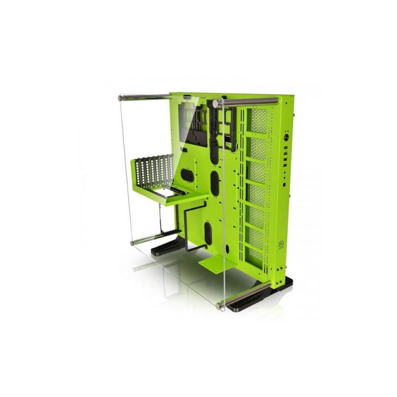 ModelCore P5 Green EditionP/NCA-1E7-00M8WN-00Case TypeMid TowerDimension (H x W x D)608 x 333 x 570 mm (23.9 x 13.1 x 22.4 inch)Net Weight12.2 kg / 26.9 lbSide PanelTransparent WindowColorGreen & BlackMaterialSGCCDrive Bays-Accessible 1 x 3.5’’ or 2.5’’ (HDD tray) -Hidden3 x 3.5’’ or 2.5’’ (Behind the M/B tray)Expansion Slots8Motherboards6.7” x 6.7” (Mini ITX), 9.6” x 9.6” (Micro ATX), 12” x 9.6” (ATX)I/O PortUSB 3.0 x 2, USB 2.0 x 2, HD Audio x 1PSUStandard PS2 PSU (optional)Fan SupportLeft Side: 4 x 120mm 3 x 140mmRadiator SupportLeft Side: 1 x 480mm 1 x 420mmClearanceCPU cooler height limitation: 180mm VGA length limitation: 280mm (With Reservoir) 320mm (Without Reservoir)PSU length limitation: 200mm